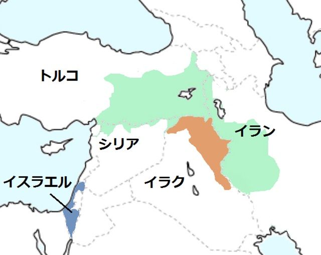 また、クルド人が住んでいる地区(緑の場所)はイラン・トルコにわたります。