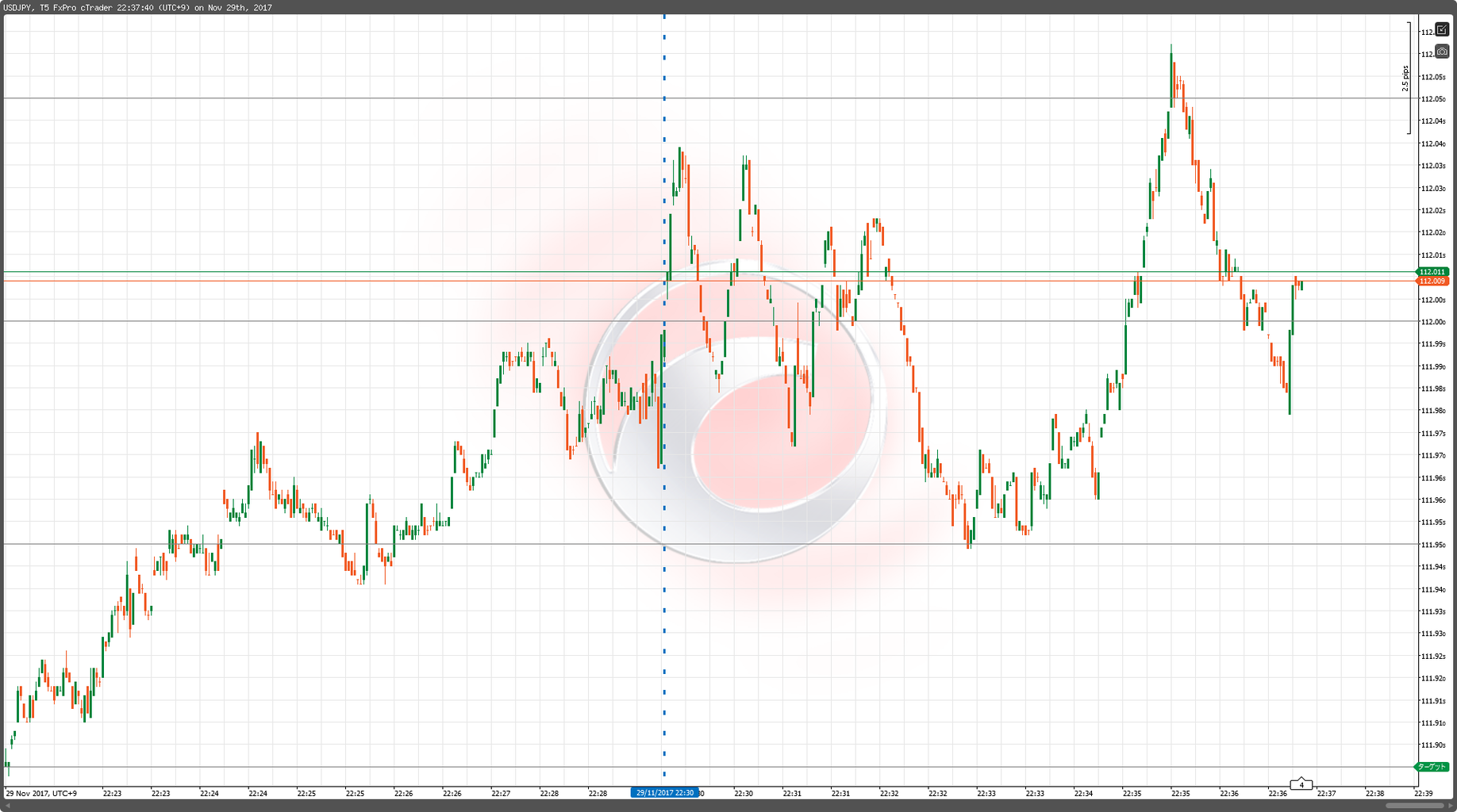 2017年11月29日22:30 USD/JPY 5ティックチャート