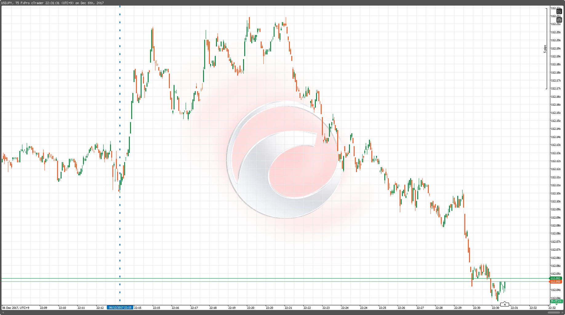 2017年12月06日22:15 USD/JPY 5ティックチャート