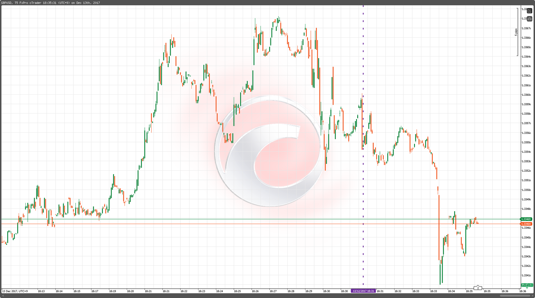 2017年12月13日18:30 GBP/USD 5ティックチャート