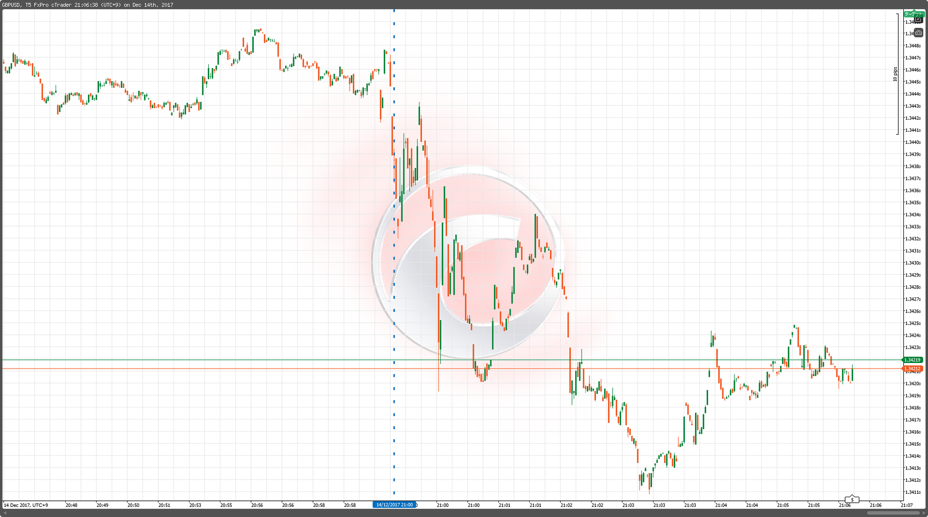 2017年12月14日21:00 GBP/USD 5ティックチャート