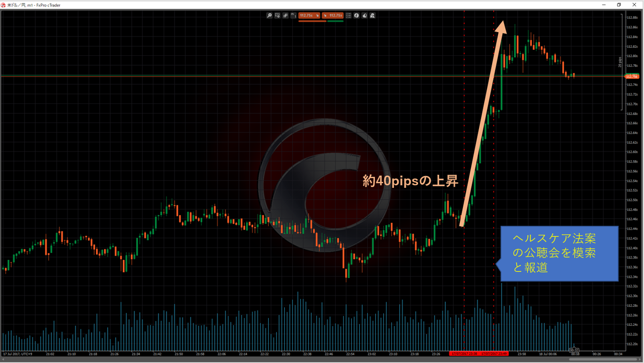 2017年07月17日23:35過ぎくらいからドル円が急騰。