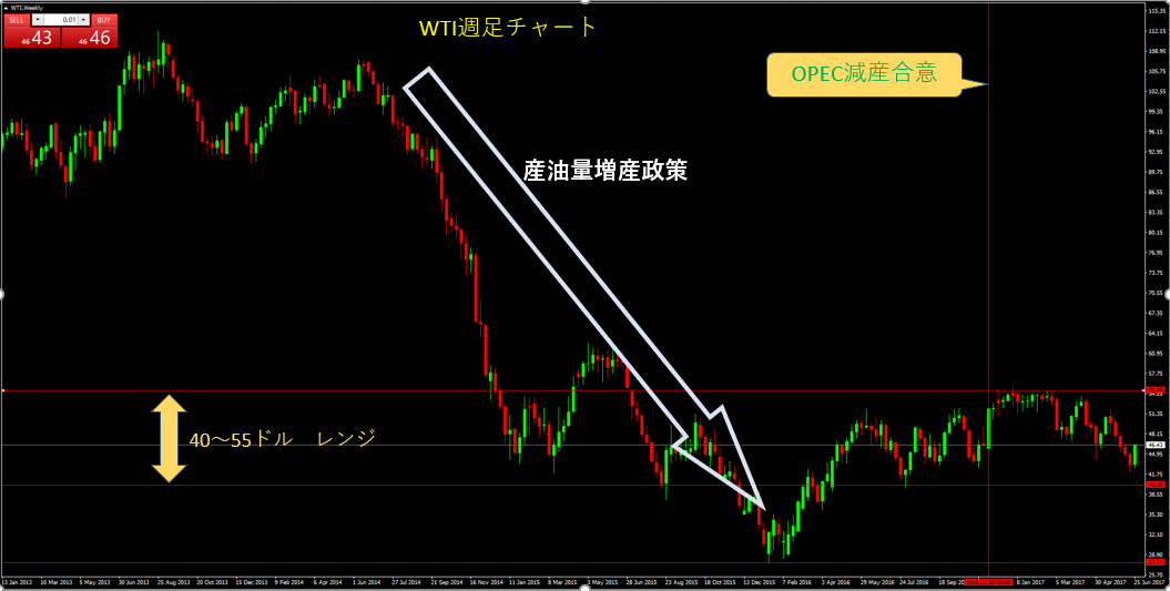 米国のシェールオイル採掘技術の向上で、採掘原価を下げることができ、40ドル前後でも利益が出るようになりました。