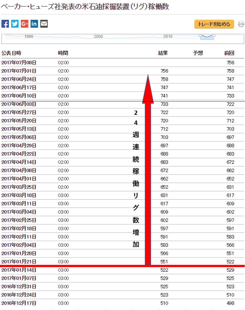 今後のリグ数と産油国の状況を注目して、原油価格を見ていきたいと思います。
