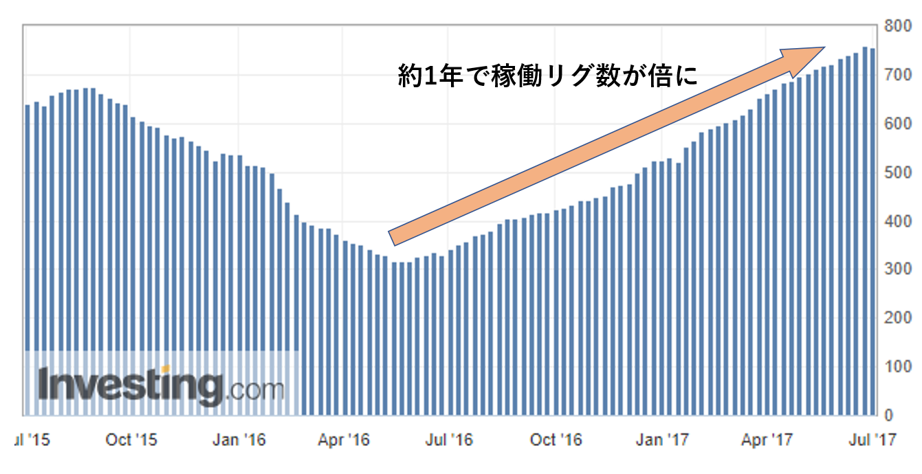 2014年には、最大で1600基くらいのリグ数があったことを考えると、まだまだリグ数の上昇余地はあるのではないかと思います。