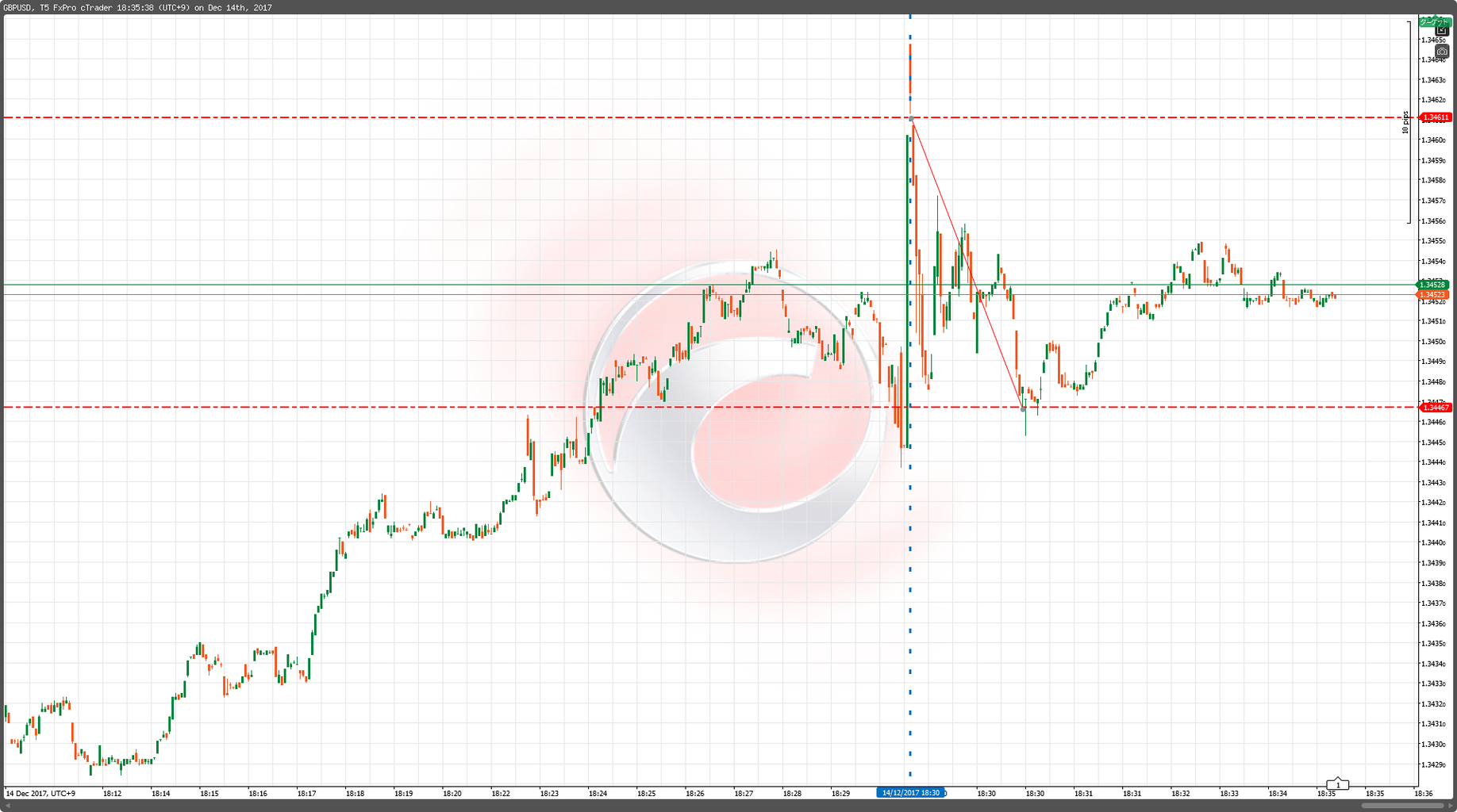 2017年12月14日18:30 USD/GBP 5ティックチャート