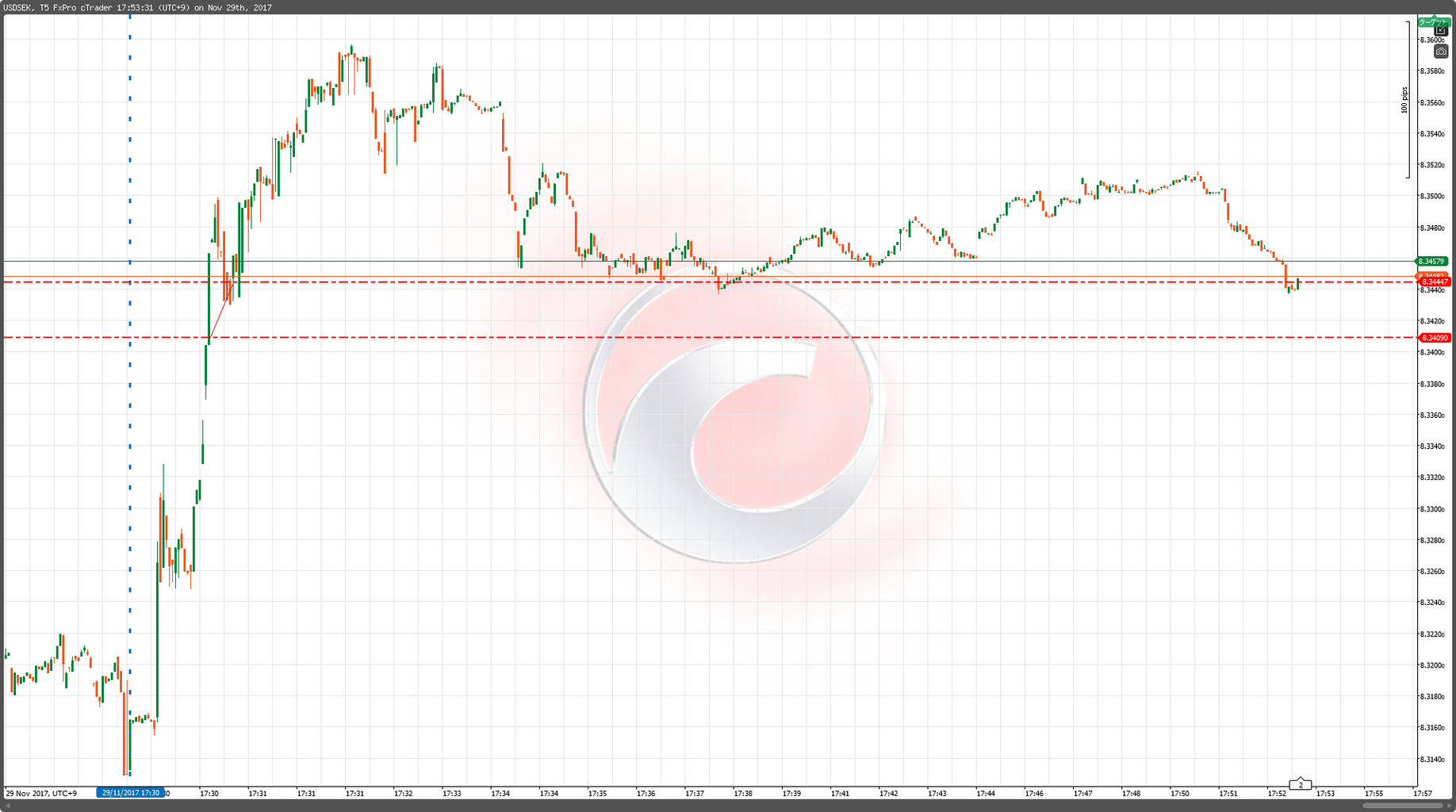 2017年11月29日17:30 USD/SEK 5ティックチャート