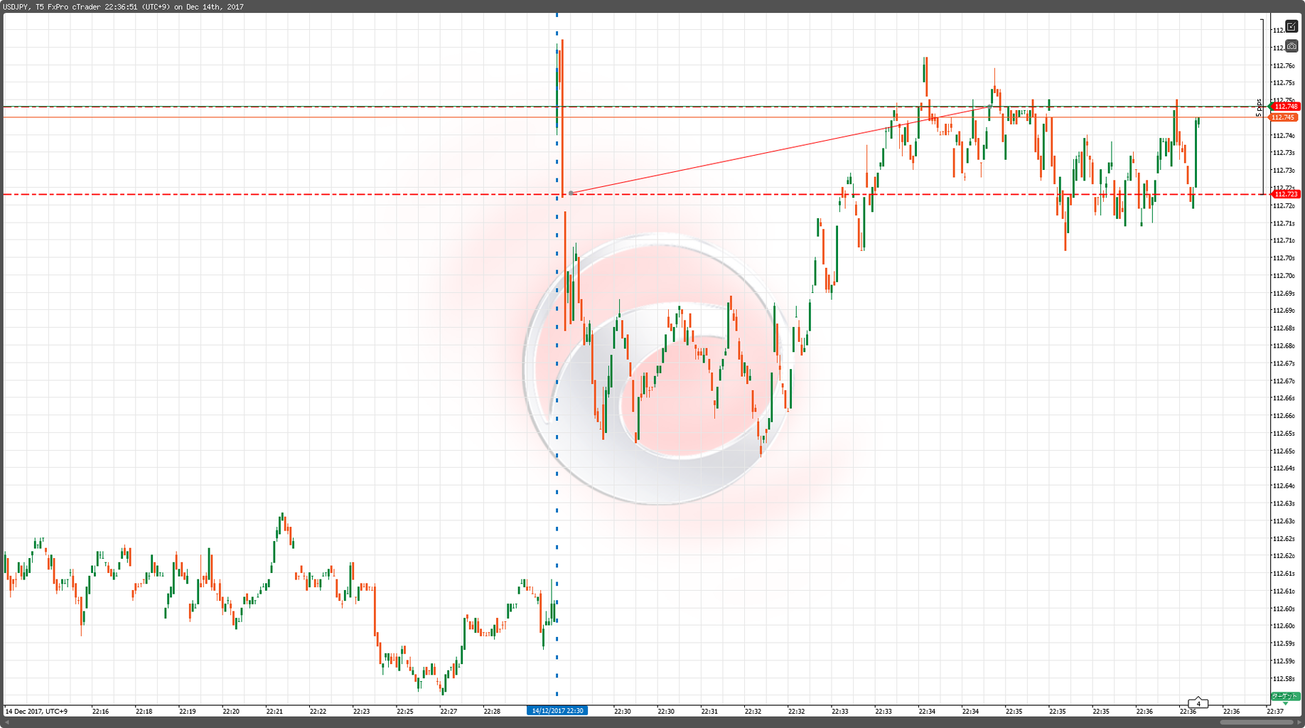2017年12月14日22:30 USD/JPY 5ティックチャート