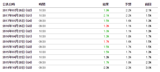 消費者物価指数(前年比)(Q2) 予想2.2% → 結果1.9%