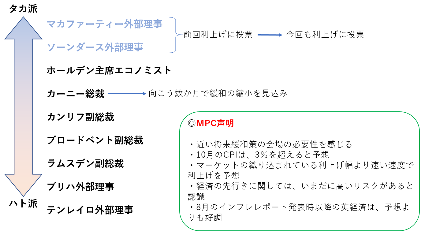 今回の投票について、タカ派・ハト派を簡単に並べてみました。