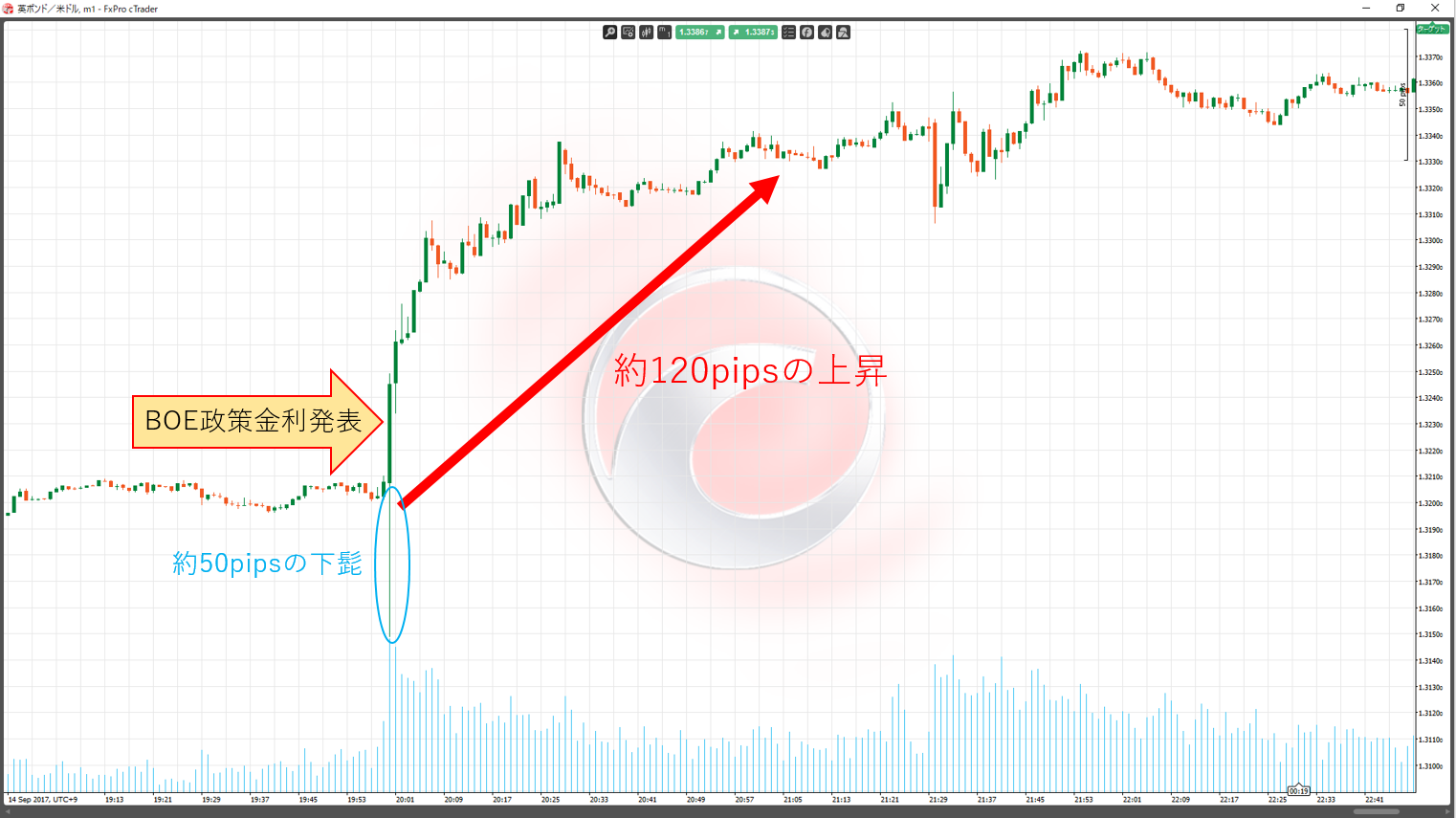 ただ、その後の声明がタカ派な内容であったため、ポンドは大きく買われる結果となりました。
