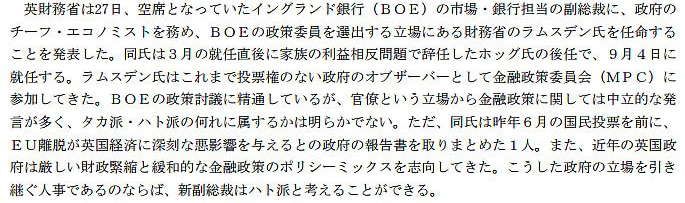 後任人事として、ラムスデン副総裁が09月04日より就任しています。