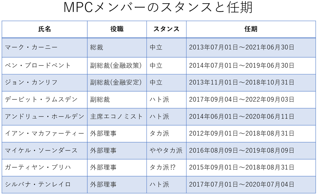これを見ることで、MPCメンバーがこの先の経済をどのように予想して、また何を基準に金融政策を考えているのかを読み解くことができます。