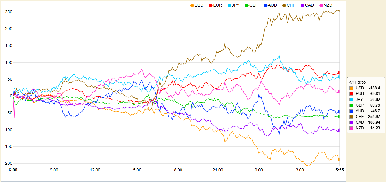 ◎昨日の主要通貨強弱グラフ